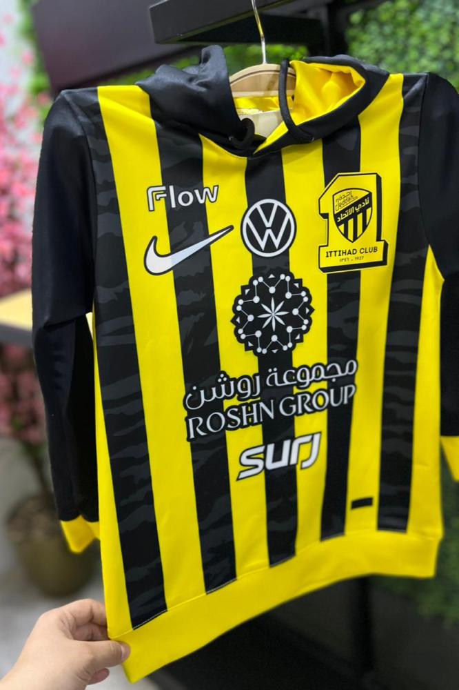 بلوفر الاتحاد الجديد 2026 شكل جديد فخمة مره ممتازه مخلوط شتوي وبلوستر جميع المقاسات متوفره للكبار والصغارمع إمكانية طباعة الاسم والرقم خلف التيشيرت