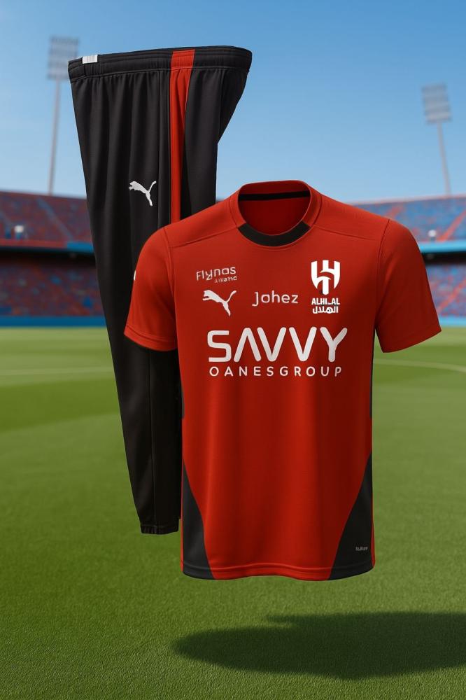 طقم تمارين نادي الهلال تيشيرت احمر مع سروال طويل اسود متجر ونجميع المقاسات متوفره للكبار والصغارمع إمكانية طباعة الاسم والرقم خلف التيشيرت