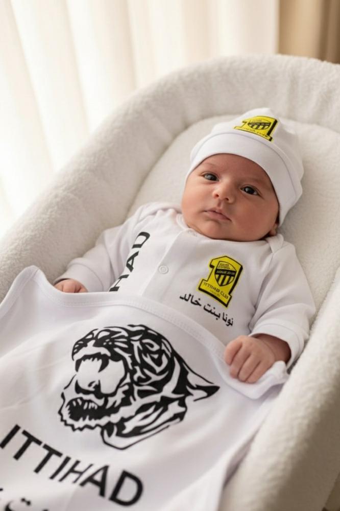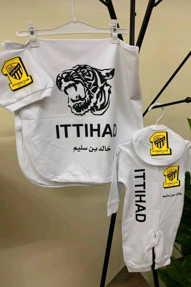- طقم اطفال رياضي متألق بشعار نادي الاتحاد